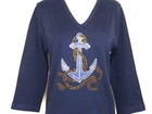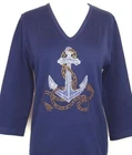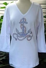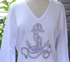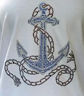 SMALL MEDIUM LARGE OR X-LARGE RHINESTONE YACHTING, BOATING, SAILING, CRUISING ANCHOR TOP HAND EMBELLISHED BLUE, CRYSTAL AND SILVER STUD ANCHOR WITH INTERTWINED ROPE ANCHOR RELATED LEGGINGS AVAILABLE SOLD SEPARATELY JUST SEARCH ANCHOR LEGGINGS IN THE SEARCH BOX IN MY STORE 3/4 Sleeve V-Neck Quality Polyester Cotton Top Measurements Size Small - Bust 40", Length 24 1/2", Sleeve Length 17" Size Medium - Bust 42", Length 26", Sleeve Length 17" Size Large - Bust 44", Length 27", Sleeve Length 17 1/2" Size X-Large - Bust 46", Length 28", Sleeve Length 18" Easy Care Washing Instructions - Machine or Hand Wash, Gentle Cycle, Warm Water, Hand or Tumble Dry On Low DO NOT DRY CLEAN