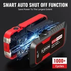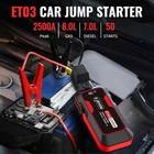 About this item POWERFUL CAR BATTERY JUMP STARTER : The ET-EB-03 car battery jump starter can easily jump-start all 12V common vehicles with up to 8.0L gas and 7.0L diesel engines in seconds with its peak current reaching 2500 amps. Supports 50 jump starts at most on a single charge and suitable for lawnmowers, motorcycles, passenger cars, trucks, and even boats, etc. BACKUP PORTABLE POWER BAN K: This jump starter battery pack can also work as a 74Wh large battery capacity portable power bank to charge your smartphones, tablets, or other USB electric devices. Two 5V/2A USB output ports are packed on this jump starter that can be applied at the same time for charging, 50% faster than a standard charger. PACKED WITH LED EMERGENCY LIGHT AND BONUS FEATURES : the ET-EB-03 car jump starter is packed with a 400-lumens LED flashlight to provide help in darkness or for emergency situations that support three variable light modes (stable, strobe, and SOS). There are more features included such as an LCD screen to check the battery status, a wide working temperature from -4℉ to 140℉, and 24 months long standby time. 10 INTELLIGENT SAFTY PROTECTIONS : This jump starter battery pack is super safe to use with 10 intelligent safety protections against overcharge, short circuits, reverse polarity, power surging and sparking, and so forth. You can detect the errors by simply checking the lights and the beep sound from the smart jumper clamps. WHAT YOU GET & WARRANTY: the package you get includes 1 * SZEVZO Jump Starter, 1 * Smart Jump Cables, 1 * USB Type-C Charging Cable, 1 * Storage Case, 1 * User Manual. This jump starter is covered by our 2 years warranty, so please contact us if you have any questions or if you are facing any issues with this jump box.