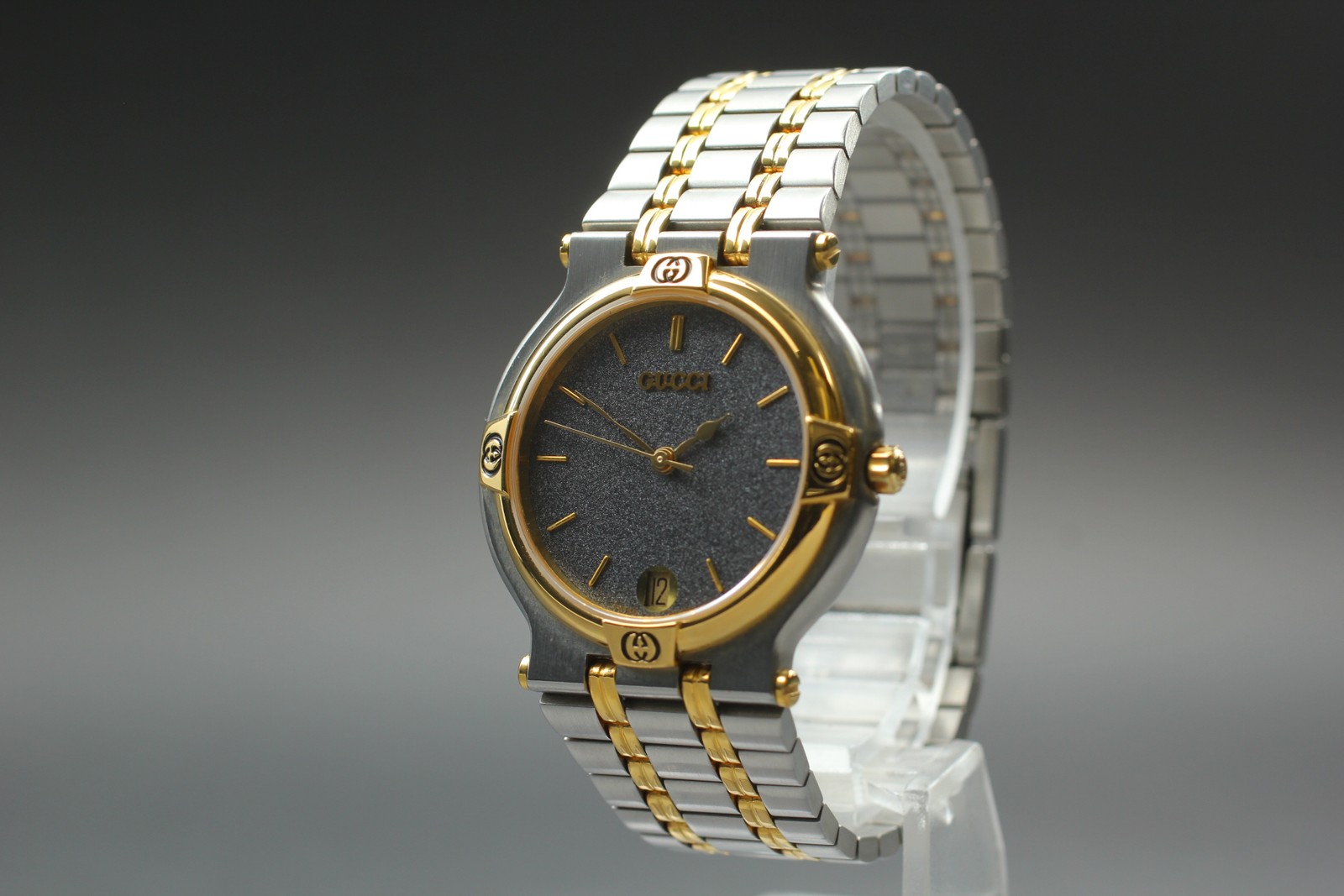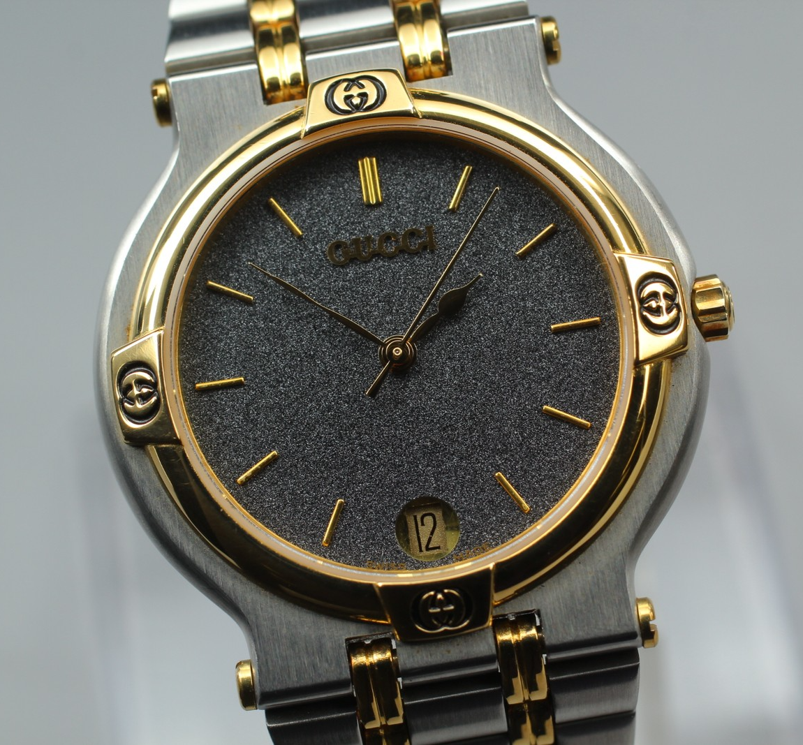 S size [N MINT w/Box] Vintage Gucci 9000M Black Gold Two Tone Quartz Men's watch #87 Description Total Condition; NEAR MINT TOP MINT Pre-owned, Almost new item MINT Pre-owned, Like new NEAR MINT Pre-owned, almost no signs of use EXCELLENT+++++ Pre-owned, minimal signs of use EXECELLENT Pre-owned, heavy signs of use VERY GOOD Poor appearance Case : Near MINT Band : Near MINT Windshield : Near MINT Serial Number; 0140100 Appearance; Appearance is beautiful. Band: Fits wrists up to about 150 mm (5.91 inches). Case size: About 31 mm Length size : About 33 mm tiny scuffs from normal use. It shows signs of use. *Please check photos. Functional; It works properly. Bundled Items; Box All you can see on the picture will be included in a set of a package. Above condition is based on my own opinion. Please check the photo carefully. Please feel free to contact me for any questions! Thank you. Shipping I send a product by FedEx International Priority . I attach the tracking number. Please bid it without worrying. Shipping is available from Monday to Friday. Weekends are not available because office is closed. Storage and Packing Storage Immediately after shooting, it is placed in a closed container with desiccant and stored for 24 hours and 365 days in a temperature and humidity controlled warehouse. All products, including cameras and lenses, are stored in a temperature- and humidity-controlled warehouse 24 hours a day, 365 days a year. Packing By weight and shape of each product, I use 13 kind of cushioning materials and pursue safety and weight reduction. Returns Unconditional Return Policy Customer service and satisfaction are very important to us. I have an unconditional return policy if notified within 30 days of the receipt of the item. All returned items must be the original condition. All return requests must be made within 30 days of the receipt of the item. Please contact me first for return before you ship it back to me. The postage of the returned goods is a seller burden. International Buyers Please Note: Import duties, taxes, and charges are not included in the item price or shipping cost. These charges are the buyer's responsibility. Please check with your country's customs office to determine what these additional costs will be prior to bidding or buying.