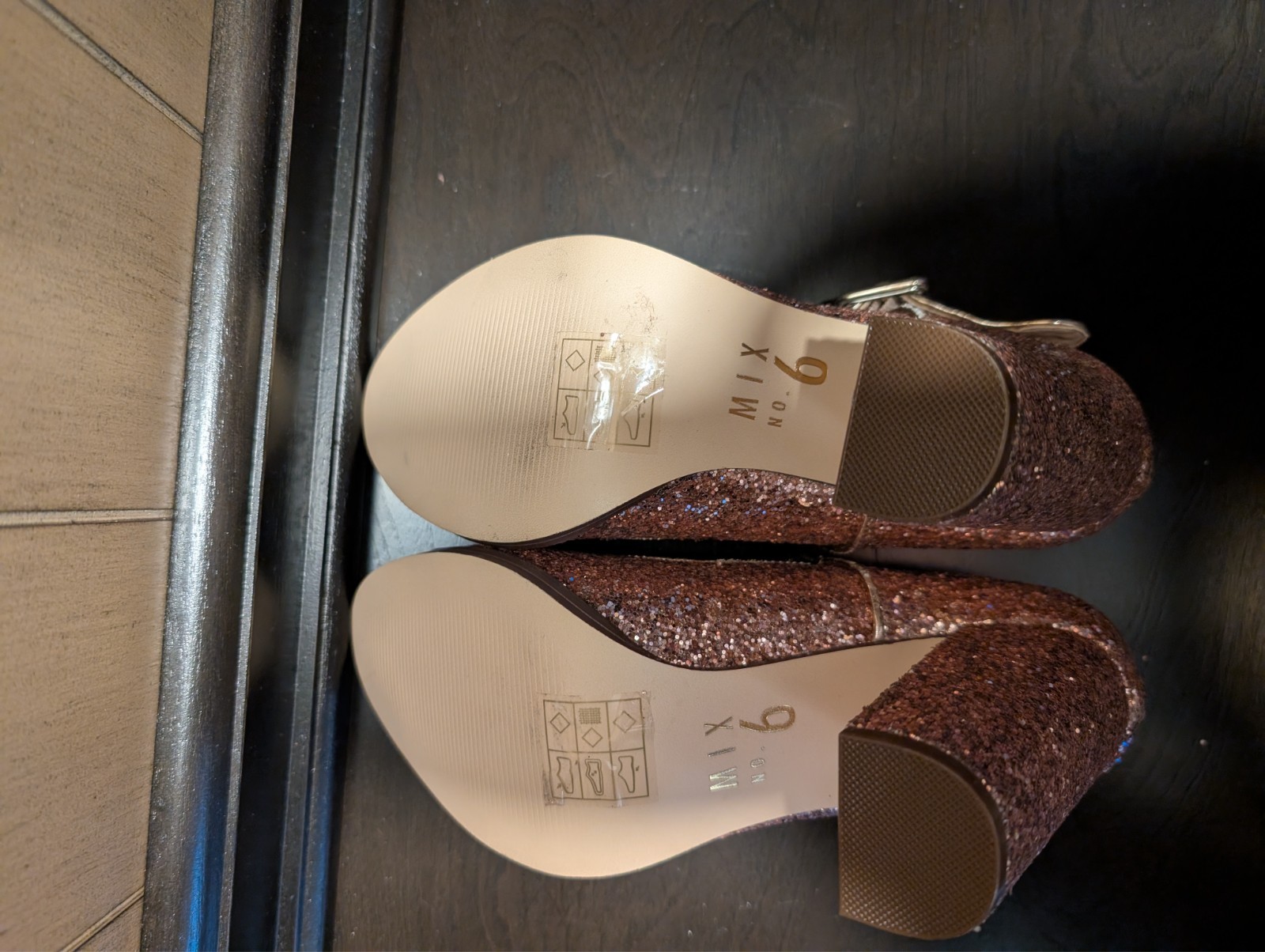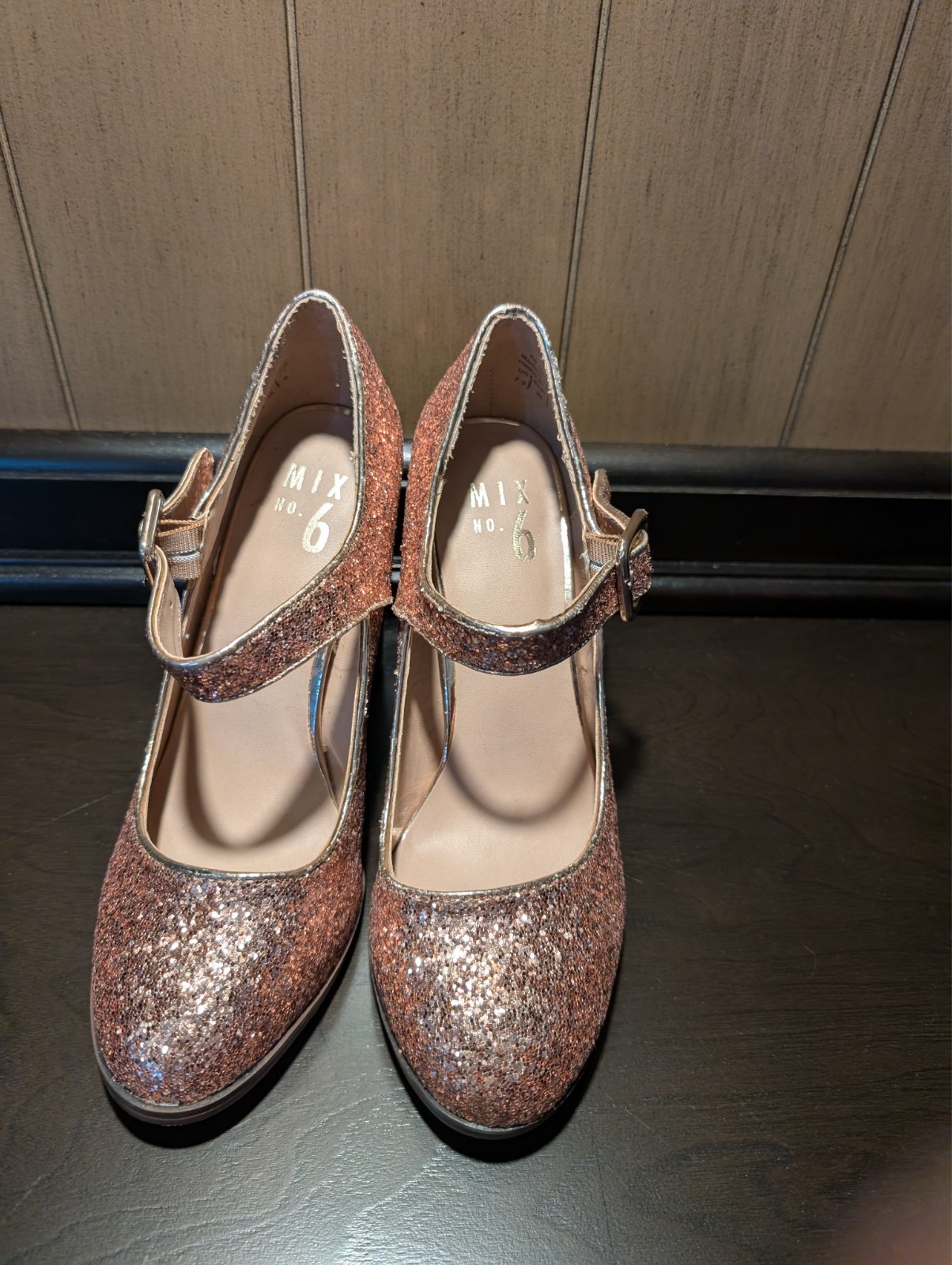 The Black Mix No.6 Shoes are stylish Mary Jane strap heels with a pink glitter sparkle accent, perfect for a party or cocktail occasion. These size 7.5 shoes feature a high block heel, buckle closure, and a solid black color with glitter accents. Made with man-made materials, these shoes are designed for all seasons and have a standard shoe width for a comfortable fit. The Mix No.6 brand ensures quality and style, making these shoes a fashionable choice for any woman looking to add a touch of glam to their outfit.
