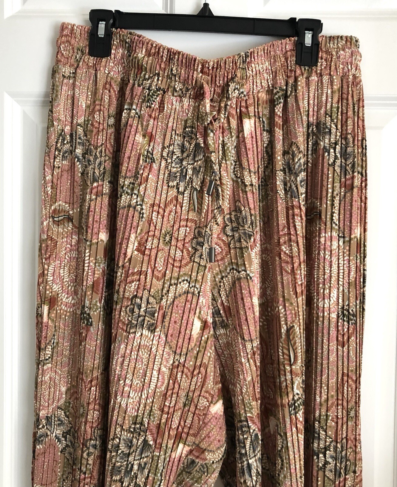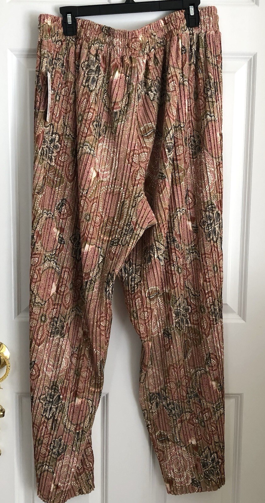 SABRINA LAUREN NEW YORK WOMEN'S PANTS SIZE 2X FLORAL ELASTIC WAISTBAND PLEATED PULLOVER, HIGH WAIST, UNLINED PS2 144 MADE IN CHINA 95% POLYESTER, 5% SPANDEX, MACHINE WASH BUSSINES CASUAL, WEAR TO WORK, CAREER, CHIC, OFFICE WEAR CASUAL, TRAVEL, EVERY DAY, FASHION, COMFORTABLE, VERSATILE, SUMMER, VACATION, CRUISER. EXCELLENTE CONDITION, NO STAINS OR TEARS PLEASE SEE MEASUREMENTS BELOW AND USE THESE GUIDELINES WHEN MEASURING YOURSELF WHEN LAYING FLAT IT APPROX MEASUREMENTS FOR 2X.- WAIST 17", RISE 16", HIPS 38", INSEAM 30", LEG LENGHT 42.5", LEG OPENING 14" (2) PLEASE TAKE A LOOK AT MY PHOTOS FOR CLOSE EXAMINATION OPEN TO ALL OFFERS!!! BUNDLE WITH OTHER ITEMS IN MY CLOSET FOR AN EVEN BETTER DEAL!!!