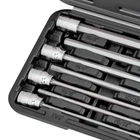 Best-in-Class: 7 Piece SAE Extra Long Hex Bit Socket Set. Provides Easy Access to Hard-To-Reach Fasteners. Constructed of Premium Materials for Increased Torque and Durability Over Time Durable: Drop-Forged and Heat Treated S2 Alloy Steel Bits – Stronger, More Durable, and Less Likely to Wear Down Over Time. Drop-Forged and Heat-Treated Chrome Vanadium Steel Sockets – Delivering Increased Strength, Resistance to Wear and Tear, a Longer Lifespan Premium Finish: Zinc Phosphate Bit Finish – Provides Rust and Corrosion Resistance. Chrome Plated CrV Sockets with Mirror Polish – Provides Corrosion Resistance and Easy Clean-Up Easy to Use: Precision Chamfered Bit Ends Insert Easily into Fasteners. Sizes are Precision Stamped on Sockets and Molded into Heavy Duty Storage Case for Faster Recognition 100% Risk-Free: Tools Meet & Exceed ANSI (American National Standard Institute) Standards and Are Covered by Our Lifetime Warranty for Your Complete Peace of Mind Contains: 7 Pcs. - 3/8" Dr. Bit Sockets – SAE: 1/8, 5/32, 3/16, 7/32, 1/4, 5/16, 3/8" Overall Bit Socket Length: 6.1 inches / 155 mm.