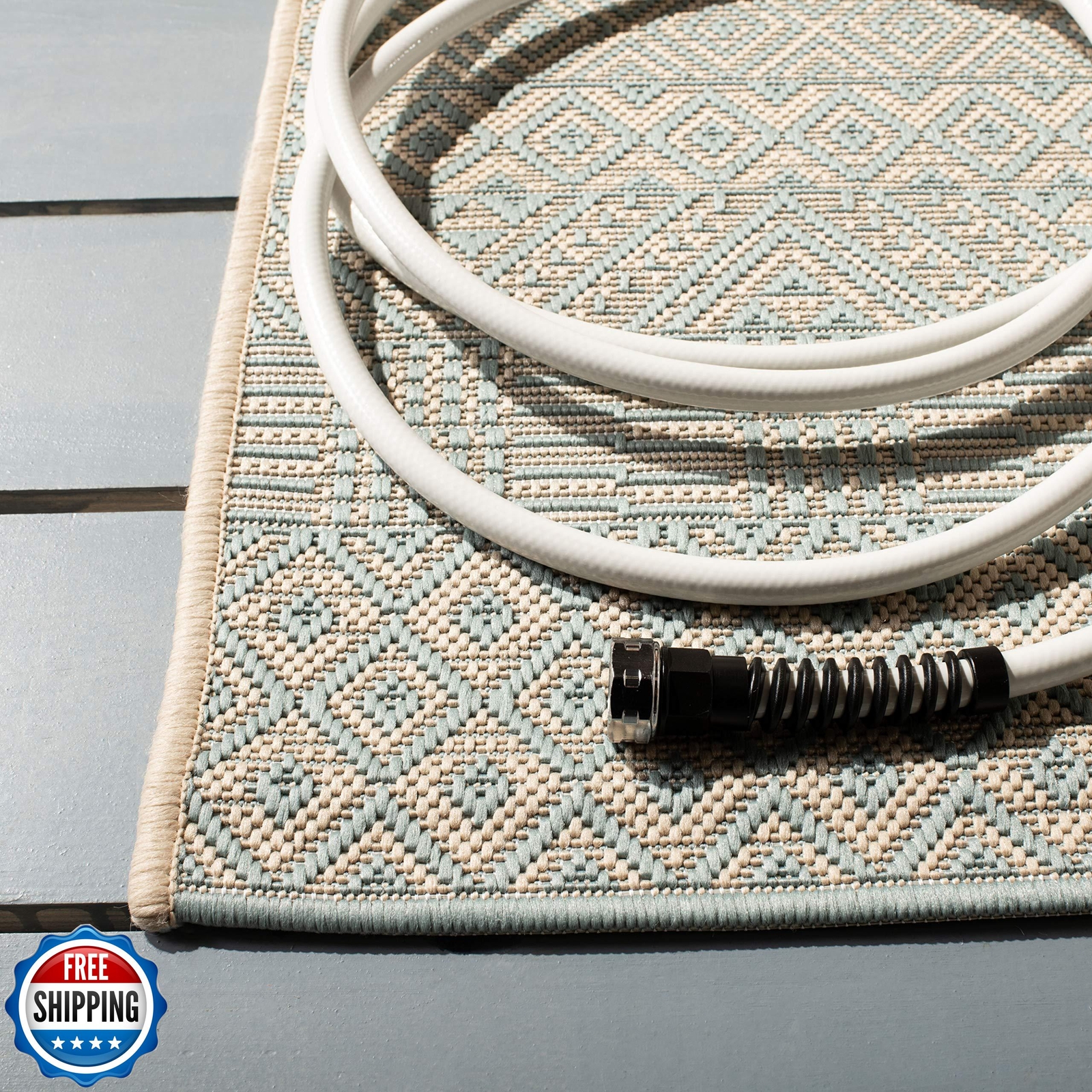 SAFAVIEH Courtyard Collection Accent Rug - 4' x 5'7", Beige and Aqua, Moroccan Design, Non-Shedding and Easy Care, Indoor/Outdoor and Washable-Ideal for Patio, Backyard, Mudroom (CY6235-21312) Features [STAIN, WEATHER, & UV-RESISTANT]: Expertly machine-woven from enhanced synthetic durable fibers that are stain, weather, and UV-resistant and have a non-shedding 0.25-inch thick pile [KID & PET-FRIENDLY]: Safe for everyday indoor or outdoor high foot traffic and areas more prone to life’s unpredictable messes from kid or pet activity [TRENDY STYLE]: Design works beautifully in any room, including the patio, deck, kitchen, backyard, dining room, mudroom, playroom, living room, or entryway [EASY MAINTENANCE & DURABLE]: Stress-free cleaning includes regular vacuuming, and rinsing with a garden hose with soapy water and air drying; When not in use for outdoors, we recommend storing away [TRUSTED BRAND]: SAFAVIEH has been a trusted brand and leader in home furnishings for over 100 years, using their expertise in crafting trendy high-quality designs; Begin your rug search with Safavieh and explore over 100,000 products today Shipping Free & Fast Shipping: We offer free shipping to most of the USA with a normal delivery time of 3-7 days. However, due to the current situation, additional delivery time (up to 3 weeks) may be required for some items. Alternative Carriers: We may use alternative carriers (e.g., USPS, FedEx, UPS) to ensure your package arrives safely and on time. Due to the use of multiple carriers, we are unable to provide a tracking number automatically. Handling Time: Orders are processed and shipped within 1-2 business days of receiving cleared payment. Shipping Restrictions: Shipping to Alaska, Hawaii, Puerto Rico, Guam, and other US territories may incur shipping charges or delivery restrictions. Please contact us before ordering, or your order can be refunded/cancelled. State Restrictions: Certain items may not be shipped to California due to state regulations. Contact for Tracking Updates: If you require tracking updates or have any concerns about the delivery of your order, please feel free to contact us, and we will be happy to assist you. Return Policy 30-Day Hassle-Free Returns: If you are not completely satisfied with your purchase, you can return the item for free within 30 days of receiving it for a full refund or exchange. Easy Return Process: Contact us, and we will provide you with a prepaid return shipping label and detailed instructions. No Restocking Fee: There are no restocking fees for returns. However, the buyer is responsible for return shipping costs if the return is not due to a seller"s error. Refund Processing: Refunds will be processed within 1 business day of receiving the returned item in its original condition. Feedback Your feedback is extremely important to us. We strive to provide the best products and customer service possible. If you are satisfied with your purchase, please take a moment to leave us a positive review. If you have any concerns or issues with your order, please contact us before leaving negative feedback. We are committed to resolving any problems and ensuring your satisfaction. Contact Us If you have any questions or concerns, please feel free to reach out to our customer support team. You can contact us through the eBay messaging system. We are available Monday to Friday, 9:00 am to 5:00 pm EST, and we will do our best to respond to your inquiry within 24 hours. Thank you for supporting our small family business!