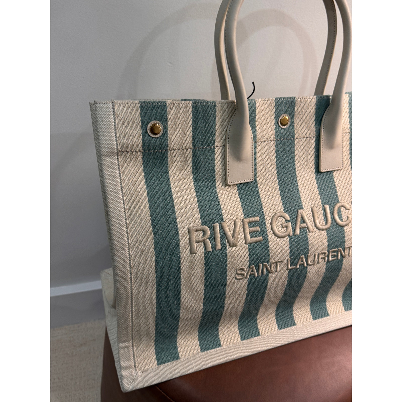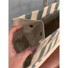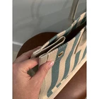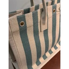 Such a great vaca travel tote - lightweight, fun stripe in neutral, yet fun color combo - use as a carry on to carry your other handbags when flying or simply carry your towels and beachwear. Snap closures on all sides, zip pocket interior, open space ideal for any organizational inserts. CONDITION : BRAND NEW, NEVER CARRIED (small mark on handle, was purchased that way, floor sample) *includes original shopping bag, dust cover & box