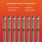 Pigma Micron Fineliner Pens feature archival quality ink for use in acid-free environments, and these pens are chemically stable, waterproof, and fade resistant. Avoid smears, feathers or bleed-through on most papers with these black pens. Pigma Micron pens are certified non-toxic, approved by ACMI toxicologists, and bear the trusted AP Seal. Use for graphic art, scrapbook, archival recording, pen and ink illustrations, freehand art, rubber stamps, cartooning, and more. Due to the delicate nature of the smaller nibs, apply gentle pressure during use to avoid bending. Pigma ink, invented by Sakura over 30 years ago, continues to be the most reliable permanent ink on the market today. Artists, the government, and scientists consider Pigma Micron a basic tool for any archival-quality, handwritten project. Use Pigma Micron to leave a mark that will last a lifetime. Manga artists, professional illustrators and watercolorists use the seven point sizes to create precision lines. About Sakura To be human is to be uniquely creative. We have a drive to create—new ideas, stories, products, art, and more. While technology will change the way we live, only we as humans have the particular ability to imagine and unlock possibility. At Sakura of America, we foster this incomparable human capability to think, dream, experiment, and connect. We know everyone is capable of creativity. This trait is within everyone, not just select people. Whether you are using our products for artwork, expression, problem solving, storytelling, or organization, creativity is at the core—allowing us to connect with ourselves and with others. We believe if you foster your creative abilities, you can reach your full potential. We encourage people to take a moment to explore how creativity unlocks new perspectives, self discovery, and human connection. Precise Ink: Black and colored Micron pens create precise marks that stand the test of time Assorted Sizes: Contains 8 Micron pens in various point sizes for versatile use Archival Quality: Sakura Micron ink is waterproof, fade resistant, bleed free, quick drying, and pH neutral Color Consistency: Pigma Micron pens use single pigments for consistent color every time Professional Results: Japanese quality Sakura pens deliver professional results for all your writing and drawing needs