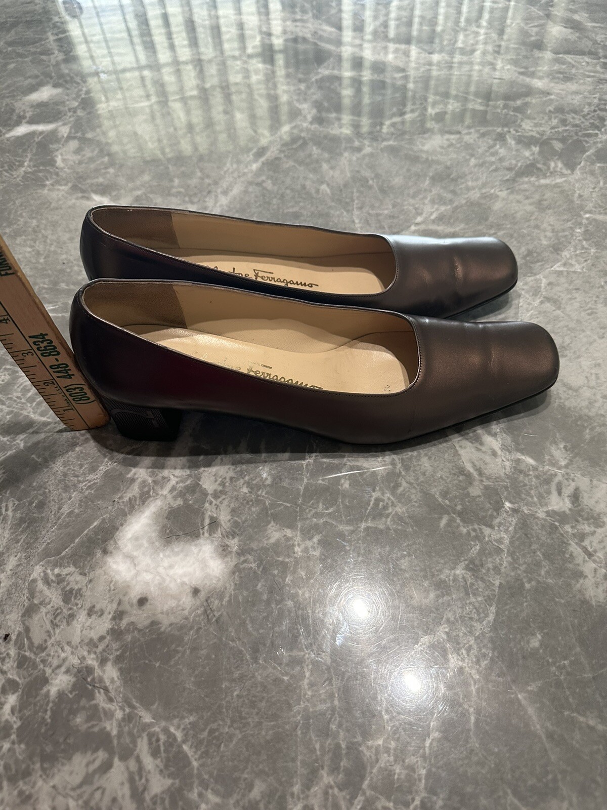 SALVATORE FERRAGAMO Womens Copper Metallic Leather Pumps Heels SZ 8.5. Pre-owned item decent condition. Generously reduced to accommodate imperfections. See all photos.