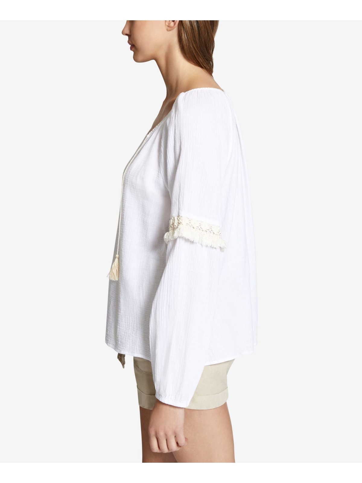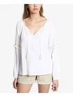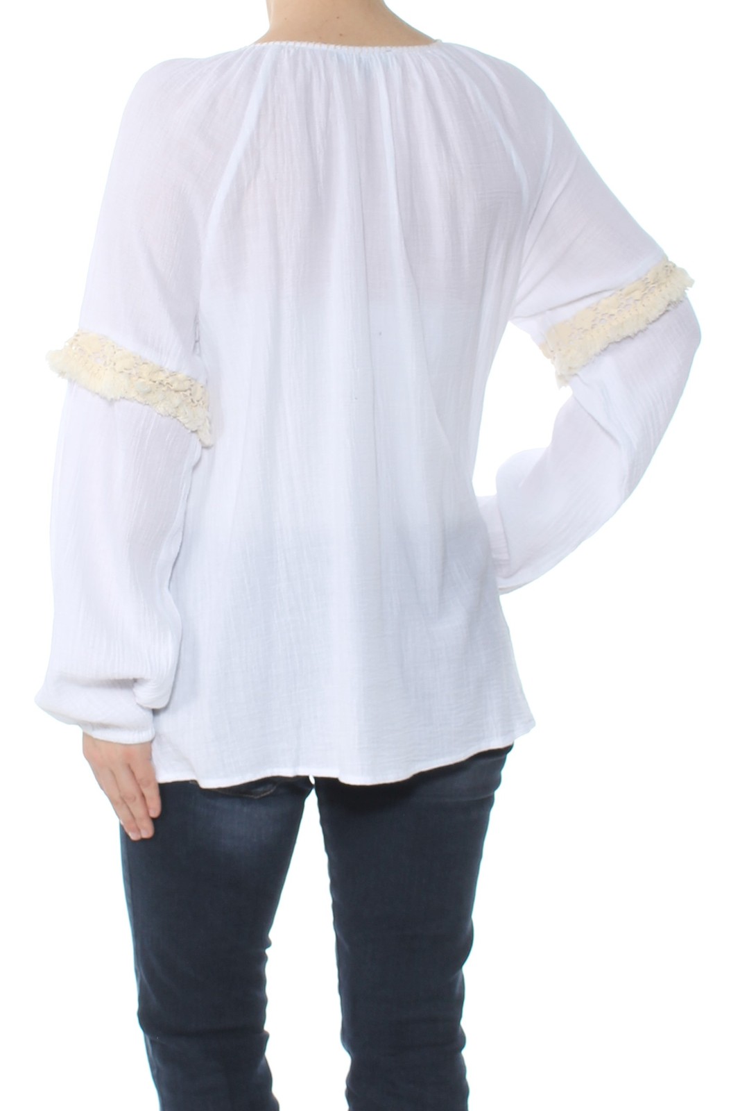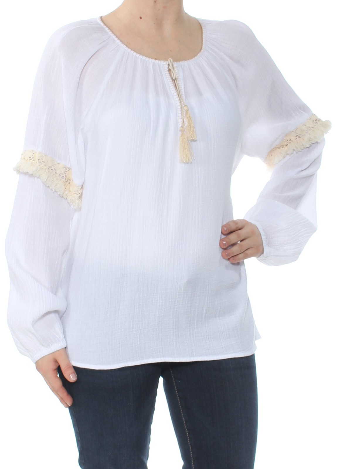This top is absolutely stunning! The delicate embellishments and tassel details give it such a bohemian-chic vibe. The long sleeves and V-neck are flattering, and the 100% cotton fabric feels soft and comfortable. Even with the minor stain, it's a steal for the price—perfect for layering or dressing up. Love the peasant-style fit!