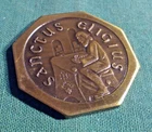 SANCTUS ELIGIUS PATRONUS NUMISMAE Numismatic Tribute Token Coin Medal Brass, Gold-Tone Brass, octagonal shape, 1.5" inches wide.