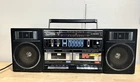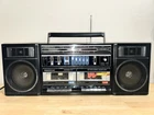Take a trip down memory lane with this vintage SANYO C35 cassette recorder from the 1980s. Made in Japan, this boombox is perfect for those who love to listen to AM/FM radio or play their favorite cassette tapes. The black color and sleek design make it a stylish addition to any room. The product line is DIGITRADIO, and it's a great addition to any consumer electronics collection. This portable stereo and boombox is perfect for those who love to take their music on-the-go. Get your hands on this classic piece of audio history today. All in working condition! Very nice