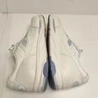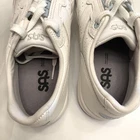 Excellent condition SAS white low top sneakers with blue accents in size 8 are stylish and comfortable tennis shoes perfect for athletic activities. Made with leather upper material and featuring a lace-up closure, these sneakers are designed for casual occasions and provide support for activities like tennis and walking. The classic solid white color with blue accents adds a pop of color to the design, making these shoes versatile for various seasons throughout the year. Made in the United States by SAS, a reputable brand known for quality footwear.