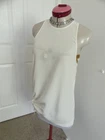 This gorgeous TOP is a blouse style and is sleeveless, with a crew neckline. It is ivory white, and is unlined. It fastens with a button at the back of the neck. It has a unique styling on the lower right side, with a gathered cut-out, with a beaded tie (the beads are still covered with paper). The style is ‘Before the Moon Ivory’. It is from SASS & BIDE and is a size Aus 6 (USA 2 / UK 4 - 6), but please check the measurements below, to ensure a good fit. The approximate measurements are: Bust: 82cm Length: 71 - 83cm (right side – left side) It is Brand New, With Tags (rrp $350). Lots of other information about this fabulous top can also be found in Item Specifics. JJ021 Please take a look at the tons of other gorgeous items I have available in your size! I love to combine postage and save you money! So if you are purchasing more than one item from me, please wait for me to send you a combined invoice, or press the 'Request a Total' button in your Cart before paying. I rate my items in the following way: BNWT / BNWOT: Brand New, With Tags or Brand New, Without Tags (some part of the tag will still be attached). New items that have never been worn. EXCELLENT: has been worn, but shows very few actual signs of wear. GOOD: has been worn and is showing light signs of wear. FAIR: has been worn and is showing more signs of wash/wear - or has a small fault, which will be clearly described in the listing I am only human and can make mistakes in my listings and descriptions - so if for any reason you are unhappy with your purchase, please contact me using the 'Contact Seller' button first, so we can quickly resolve the issue. This item comes from a SMOKE FREE HOME but the odd puppy hair may drift in due to the fact she is my darling shadow throughout the day.