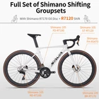 UCI Certificated Carbon Frame The frame has been certified by the UCI and is authorized to participate in any UCI-organized event. shimano 105 ST-R7120 With the mechanical 12-speed components of the 105 series, offers a shifting system for the most diverse types of road cyclists. the ST-R7120 shift/brake levers are not only characterized by the fast and intuitive shifting quality typical of the series, but also know how to convince on an ergonomic level thanks to improved grip and optimized comfort features. shimano 105 FD-R7100 Front Derailleur - 2x12-speed With the mechanical 12-speed components of the 105 series, The FD-R7100 front derailleur is characterized not only by a light, harmonious and at the same time natural shifting behavior, but also impresses with its simple and precise adjustability. shimano 105 BR-R7170 disc brake caliper The hydraulic Shimano BR-R7170 brakes, athletes can test their limits even further. A 10 % larger pad spacing compared to the previous model reduces the risk of unwanted brake friction and grinding brake discs. This reduces overall noise during deceleration, the BR-R7170 calipers not only grip quickly, but also reliably. With 11-32T Cassette With a gear ratio range of 327 %, the 11-32T cassette is optimally equipped for the most diverse terrain requirements. Whether sprints on the flat or steep climbs, with a gradation of 11 to 32 teeth, the 12-speed sprocket set has the right answer for every situation. shimano 105 RD-R7100 Rear Derailleur - Shadow RD | 12-speed With the mechanical 12-speed components of the 105 series. The RD-R7100 rear derailleur combines the harmonious, consistent and nevertheless responsive shifting behavior of the Shadow RD design with Direct Mount compatibility and a wider ratio range, the Top Normal rear derailleur also enables energy-saving transmission with a ratio of less than 1:1, which is ideal for climbing and supports the rider when climbing even steep ramps. Bicycle specification Bike Type: R08-R7120-24S Wheel Size: 700C Frame Size: 47cm/51cm/54cm/56cm Bicycle net weight :8.8kg (pedals not including) Frame material: T800 Carbon fiber Fork: T800 Carbon Fiber Handlebar: T800 Carbon fiber, 400mm x 31.8 mm Shift Lever: SHIMANO, ST-R7120 Front Derailleur: SHIMANO, 105 FD-R7100 Rear Derailleur: SHIMANO, 105 RD-R7100 Crank set: PROWHEEL , 34/50T*170MM Freewheel: SUNRISE 11-32T , Cassette Brake caliper: SHIMANO ,BR-R7170 Brake rotor: IIIPRO Centeral lock Pedal SANYUN :LP-B921 Chain: YBN 12S 1/2"x11/128" Saddle: YBT, PU leather Seat post: T800 Carbon fiber 350mm Wheels: Carbon fibre , 50MM Front hub:M12*100mm, 14G*28H
