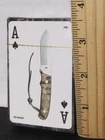 This deck of cards is a must-have for any collector or fan of classic games. The Schrade Old Timer deck of cards is a new, sealed product that is perfect for game night or as a gift for someone special. The cards feature knives, and are sure to provide hours of entertainment. Please note some light wear on the packaging from storage - kindly refer to the pics and make an informed decision.