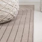 Durable high-low design with a short 0.25" pile A light taupe background with a slight purple hue is punctuated by angled, interlocking stripes Made from easy-care polypropylene - just sweep, vacuum or hose down with mild soap and water 100% Polypropylene No backing, use of rug pad is recommended (sold separately)