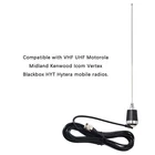 Maswell Dual Band NMO Antenna Compatible with Motorola Midland 2Meter/70cm Transceiver About this item [Mobile Radio Antenna Frequency] The antenna features VHF UHF of 144/430 MHz (136-174MHz and 400-470Mhz) with VSWR:<= 1.5. [Great Specifications] The antenna features great specifications with vertical polarization and gain: 144MHz (3.0dBi), 430MHz(5.0dBi) for better TX and RX. The maximum power input is 100W along with impedance ranging 50Ω and omni radiation. [Premium Material] This 20inch or 51cm tall antenna is composed of stainless steel making it durable and lightweight with a weight of 160g. The NMO mobile transceiver antenna requires no tuning. [Compatibility] The two-way antenna is compatible with VHF UHF Motorola Kenwood Icom Vertex Blackbox HYT Hytera mobile radios. [What You Get] The MASWELL package contains 1*dual band NMO antenna that is professionally tested and 1*small L-type installation tool. Please note that the NMO magnetic base in not included. If you run across any problems or issues, please feel free to contact us. The Maswell antenna features a frequency range of 144/430 MHz (136-174MHz VHF and 400-470Mhz UHF) with VSWR:< 1.5 which is carefully planned and developed to make sure, you receive great transmission over many uses. The Maswell dual band NMO antenna is compatible with VHF UHF Motorola Kenwood Icom Vertex Blackbox HYT Hytera mobile radios. NMO Connector Inner diameter is approximately 1.1 inches, outer diameter is approximately 1.5 inches. Premium Material This antenna is composed of stainless steel making it durable and lightweight with a weight of 160g. Antenna requires no tuning. Easy Installation Easy installation by rotating the two screws of the antenna base with the L-type installation tool. Compatibility The antenna is suitable for mounts or coaxial cables with NMO connector. Electrical Specifications Frequency Range 144/430 MHz Maximum Power Input 100W Gain 144MHz (3.0dBi) 430MHz (5.0dBi) Impedance 50 Ω VSWR <1.5 Polarization Vertical Radiation Omni Lighting Protection Direct Ground Mechanical Specifications Height 20 inches Antenna Connector NMO Weight 160g Radiating Element Material Stainless Steel