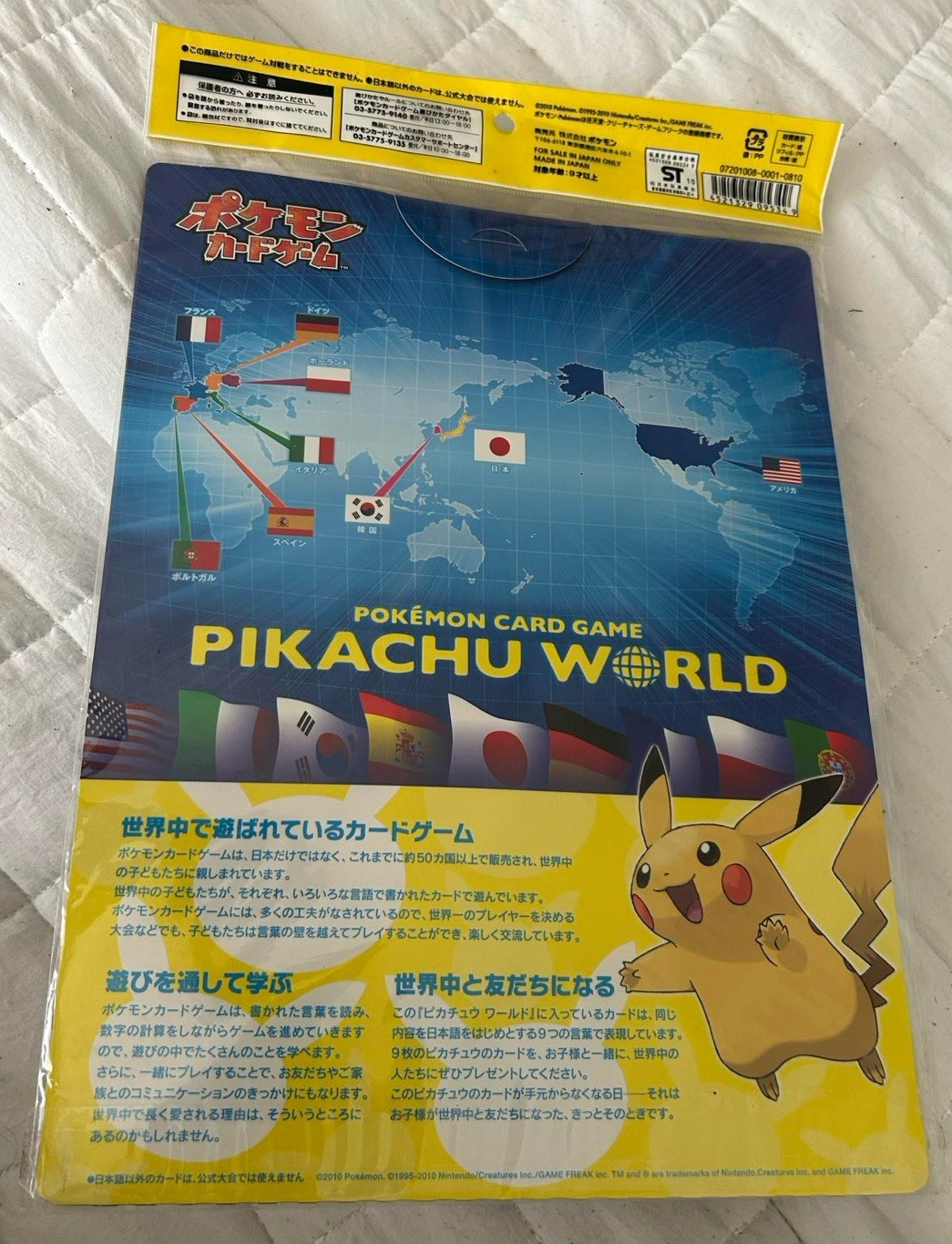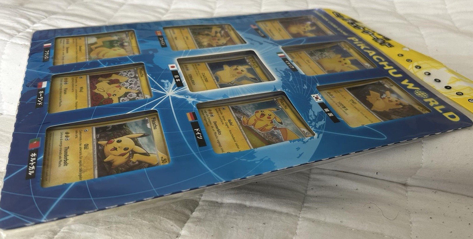 El producto es un juego de cartas Pokémon sellado Pikachu World 9 juego de cartas, que es un artículo promocional exclusivo de Japón. El conjunto cuenta con Pikachu como personaje y es parte del juego de JCC Pokémon. Las tarjetas están hechas de papel y aún no están abiertas, lo que las convierte en un objeto de colección deseable para fanáticos y coleccionistas por igual. Este conjunto de edición limitada ofrece una adición única a cualquier colección de cartas Pokémon, especialmente para aquellos que aprecian los artículos promocionales raros y exclusivos.