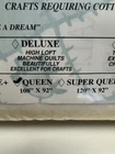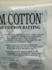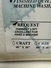 1. Brand: Quilters 2. Item Description: FACTORY SEALED Quilters Dream Cotton Request Natural Queen Size Quilt Batting 108" X 93" 3. Condition: The package is factory sealed condition. There is no sign of tempering on the sealed tape on the package. This package is 100% brand new from the manufacturer. The photos are taken on actual item on sale. 4. Color: 5. Included Items: A. Included: Comes in original packaging B. Not Included: Nothing Missing 6. Suggested Retail Price: 7. Product Features:
