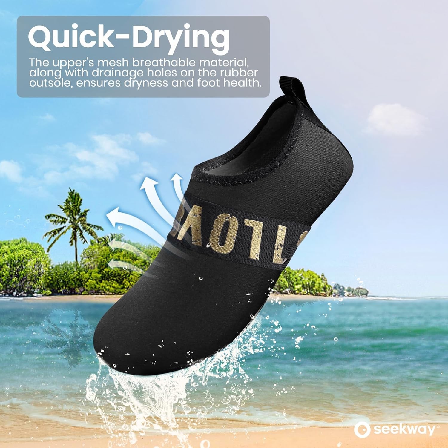 SEEKWAY Water Shoes Women Men 11.5-12.5 Women/10.5-11.5 Men, 6b-901 Golden Description SEEKWAY Water Shoes just made for you !SEEKWAY specialise in providing the best quality water shoes and a variety of styles for you to meet your individual sincerely hope it can bring unlimited pleasure to your life and get your approvalThe soles of our product are made of ruber materials with excellent air permeability and non-slip the upper is made of a diving material with good breath ability and quick the Feet Safe & Comfortable.Wearing water shoes at home protects the feet from injuries and punctures.Unique sole design,with an ergonomically molded,offer great traction for any surfaces,differed from other shoes,shock absorption performance cushioning separated to protective toe. Features: Product Details: Department : unisex-adult Handling We will ship all orders within 3 business day of payment. Delivery We Do Not Ship Outside of the Continental US. Return Policy All items qualify for returns within 30 days of receipt. Buyer is responsible for return shipping on any item that is not damaged. Feedback We take our reputation seriously, we buy and sell online, so we understand the value of trust. If you are unsatisfied with your order, please contact us and we will work with you to resolve it to your satisfaction.