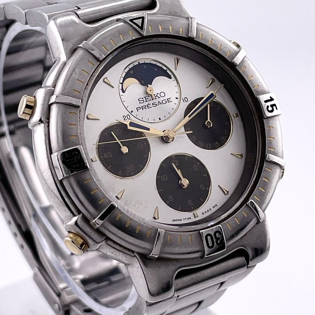 SEIKO Presage 7T36-6A60 Moon Phase Silver Dial Quartz Men's Watch Chronograph Description Condition: used ●Item SEIKO PRESAGE Watch Moon Phase Chronograph Men's Quartz Watch ●Size Function: Dial: Silver Movement: Quartz Case Size: 39.4mm Band Width (approx.): 19.6mm Wrist Circumference (approx.): 16cm Weight: 92.9g ●Condition No noticeable scratches or stains ●Color Silver ●Material Stainless Steel ●Accessories None All my products are 100% Authentic. Please feel free to contact us if you have any question. Please check the picture. Payment Please pay within 5 days after the auction closed. Shipping About other area, please ask me. When you purchase two or more my items, I can send them together and discount shipping cost. Returns Returns are accepted ONLY if the item was not the item described. International Buyers - Please Note: * Import duties, taxes and charges are not included in the item price or shipping charges. These charges are the buyer's responsibility. * Please check with your country's customs office to determine what these additional costs will be prior to bidding/buying. * These charges are normally collected by the delivering freight (shipping) company or when you pick the item up - do not confuse them for additional shipping charges. * We do not mark merchandise values below value or mark items as "gifts" - US and International government regulations prohibit such behavior. Important Notice For U.S. Buyers For shipments to the US: Import duties and taxes are already included in the item price, so there will be no additional charges upon delivery. Note: For items valued over $2,500 USD, a formal entry may be required by U.S. Customs, and duties and/or taxes may apply, which must be paid by the buyer, even for shipments to the United States. For Buyers Outside the US: Import duties, taxes, and charges are not included in the item price or shipping cost. These fees are the buyer's responsibility. Please check with your country's customs office to determine what these additional costs may be prior to bidding or purchasing. These import-related payments are the buyer's responsibility in accordance with eBay's Terms and Conditions.