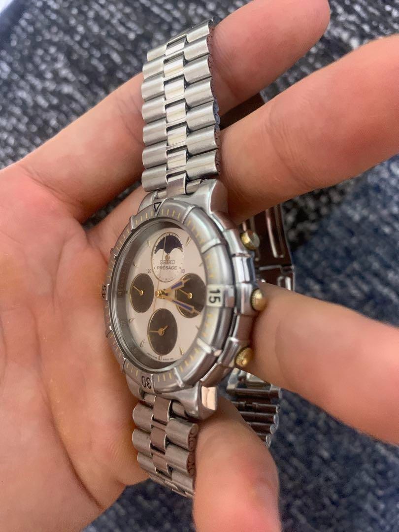 Description Seiko Presage Re. 7T36-6A60 Moon Phase Alarm Chronograph 39mm Wrist Circumference: 16.5cm Product Condition No noticeable scratches or stains Shipping Fedex,DHL,Japan Post *For FedEx / DHL shipping items, a person residing in the remote area will have to pay an additional shipping fee. International Buyers - Please Note: Import duties, taxes, and charges are not included in the item price or shipping cost. These charges are the buyer's responsibility. Please check with your country's customs office to determine what these additional costs will be prior to bidding or buying. Thank you for your understanding. Read more... Conditions shown here are based on our standard. Please understand that the conditions of used items that have been stored in our warehouse changes by time. Listings that shows "Working" means that it confirmed working when we stored items in our warehouse, some items might stop working during the shipment or after delivery to you.(We double check if they are working before shipping them out) Pre-owned(used) items are used items, so please purchase if you acknowledge it.