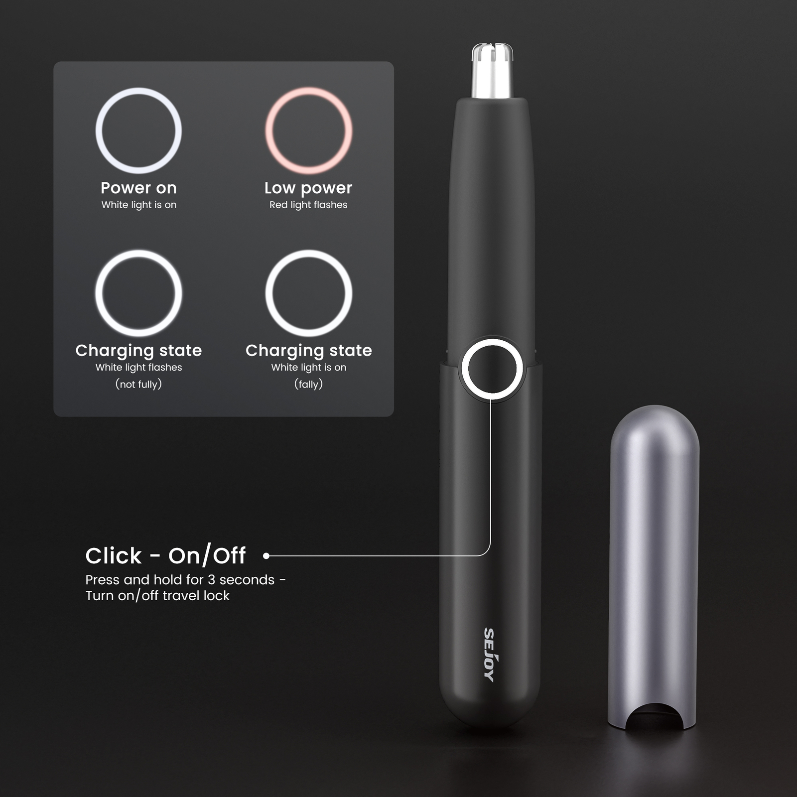 Motor Type:MagneticType:Ear and Nose Hair TrimmerFeatures:Cordless, WaterproofBody Area:Ear, Nose, EyebrowPower Source:USB ChargingDepartment:UnisexBrand:SEJOYMPN:Does Not ApplyHead Type:Nose Hair TrimmerColor:Black