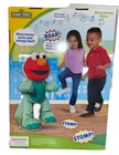 This is a Sesame Street Elertonic Elmo Plush Toy named Dino Stomp Elmo, measuring 13 inches. It is a teal-colored plush stuffed animal that sings and dances. Suitable for children aged 18 months and older, it belongs to the Sesame Street character family. Great for playtime and entertainment for kids between 1-4 years old.