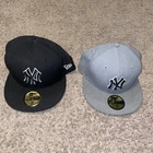SET OF 2! MLB New York Yankees New Era 59Fifty Hat Cap! Black/Grey! SEE! AS-IS!