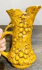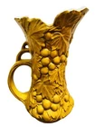 There is paint fading and imperfections with the vases. Please view all pictures as reference. Add a touch of vintage charm to your collection with this beautiful set of three McCoy Pottery Pitchers. Each pitcher features a glossy finish with a pattern of grapes and leaves in vibrant shades of yellow, red, and green. Handmade in the USA in the 1950s, these pitchers are a true representation of art pottery production technique. They have been well-preserved over the years and are in great condition. The item has a unique style and is perfect for both decorative purposes and serving drinks. Please read before bidding/buying: My items are usually pre-owned or vintage items and show signs of wear from years of use and storage --not brand new condition. Please take this into consideration when buying. I try to describe the item as accurately as possible and provide several pictures so you can determine condition. I am not familiar with everything so please ask questions before buying or let me know if you think I've overlooked any details. Items are sold as is with all sales being final. Payment is expected within 5 days or an unpaid item case will be opened with Ebay. I always leave feedback upon receiving feedback. This is how I know all is well and you're item arrived in good order. Thanks for your interest. **All reasonable offers considered**