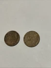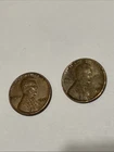 The product is a set of two circulated 1944 Lincoln Wheat Cent pennies, including one from the Philadelphia mint and one from the Denver mint. These copper coins have a composition of 95% copper and are classified as Small Cents. They feature the familiar portrait of President Abraham Lincoln on the obverse and wheat stalks on the reverse. These coins were minted during World War II and are a part of US coinage history. The coins come uncertified and are suitable for collectors interested in vintage American currency.