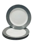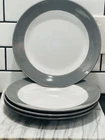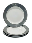This set includes four contemporary round salad plates from Royal Norfolk, each measuring 7.5 inches in diameter. Made of gray and white stoneware with an ash glaze finish, these plates are suitable for various occasions such as Christmas, anniversaries, or everyday use. Manufactured in 2024 in China, these plates feature a solid pattern and are part of the original production style of art pottery. The design is decorative and printed with a backstamp, adding a touch of elegance to your dining table.