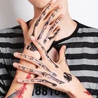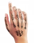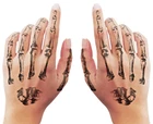 Realistic Gothic SKELETON HAND BONE Temporary Fake Tattoo Makeup Realistic SKELETON HANDS BONES TEMPORARY FAKE TATTOOS-Gothic Punk Halloween Cosplay Costume Accessory-SET Adult Size Fingers Anatomy PAIR-Gross Horror Makeup Special Effects FX-Doctor, Nurse, Zombie, Day of the Dead, Mardi Gras-Black Print Decoration Item #: HH-202380-SKEL Condition: New - without tags Realistic SKELETON HANDS BONES TEMPORARY FAKE TATTOOS - Gothic Punk Biker Cheap Halloween Cosplay Costume Accessories - Complete SET Adult Size Fingers Phalanges Anatomy PAIR - Gory Gross Undead Horror Makeup Special Effects FX Perfect for costumes: Doctor, Nurse, Zombie, Witch Doctor, Voodoo priest, Day of the Dead, Dia de los Muertos, Mardi Gras - Black Print Design Hand Decoration - ONE SHEET - enough for BOTH hands, Right and Left! Gothic Punk Biker Horror Gory Realistic FAKE TEMPORARY TATTOOS - SKELETON HANDS BONES ANATOMY DESIGN - Steampunk Novelty Cosplay Halloween Costume Accessory Walking Dead Zombie Gory Gross Undead Black Print Design Doctor, Nurse, Zombie, Day of the Dead, Dia de los Muertos, Mardi Gras, Gruesome Holiday Costume Clothing Accessory for Men, Women, Teens - Incredibly horrific designs, Cheap Halloween Props, Cheap Halloween Decorations -Tattoo will last several days with care. -Applies easily with water. -Simply remove with baby oil or rubbing alcohol. -ONE Tattoo Sheets per package, as pictured. -Package size 7.5-inch high x 8-inch wide -Each sheet approx 6-inch high x 7-inch wide. -Individual Tattoos vary in size between 1.5-inch (3.75cm) to 5.5-inch (13.75cm). -Ages 12+ Directions: 1. Make sure skin surface is clean and dry. 2. Select the tattoo and cut from sheet with transparent paper still attached. 3. Carefully peel away transparent protection paper, taking care not to touch the sticky surface of the tattoo. 4. Place tattoo face down on clean dry skin and rub backing paper with a damp cloth or sponge for 10-20 seconds. 5. Gently peel away backer paper slowly, checking for adherence, or replace backer paper and re-wet before proceeding. 6. Allow tattoo to dry. 7. Tattoo will last several days with care. 8. To remove tattoo, wipe gently with soft cloth dipped in rubbing alcohol or baby oil. --------------------------------------------------- Longest finger approx. 5.5-inch (13.75cm) Long Shortest pinky finger approx. 3-inch (7.5cm) Long 12-total pieces make up each SET PAIR *Caution: *Don't apply to sensitive skin, near eyes and lips, or if allergic to adhesive or listed ingredients. Ingredients: Acrylates Copolymer, Ethyl Acetate, Iron Oxides, Yellow 6 Lake, Blue 1. mpn: HH-202380-SKEL upc: 683649669588 / 192937246177