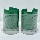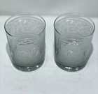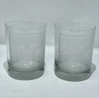 SET of 2 Safari African Animals Etched Glass Old Fashioned Lowball Tumbler. In excellent condition with no chips or cracks. May have some slight wear but it is very hard to tell - please use the zoom function to see items closer. Measurements: 4 1/8” tall by 3 1/4” tall