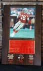 Show off your love for the San Francisco 49ers with this vintage Joe Montana plaque. This piece of sports memorabilia is perfect for any collector or fan of football. Made in the United States, this plaque features a beautifully crafted design that showcases Montana's time with the 49ers. Whether you're adding it to your collection or displaying it in your home, this Joe Montana plaque is sure to be a touchdown.