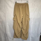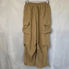 SHEIN EZwear Khaki Weave Size Friendly High Waist Parachute Cargo Pants Drawstring Waist, Pockets, Parachute Style, High Waist, Loose Fit, 100% Polyester Care Instructions: Machine wash or professional dry clean Size Medium Retails $18.99