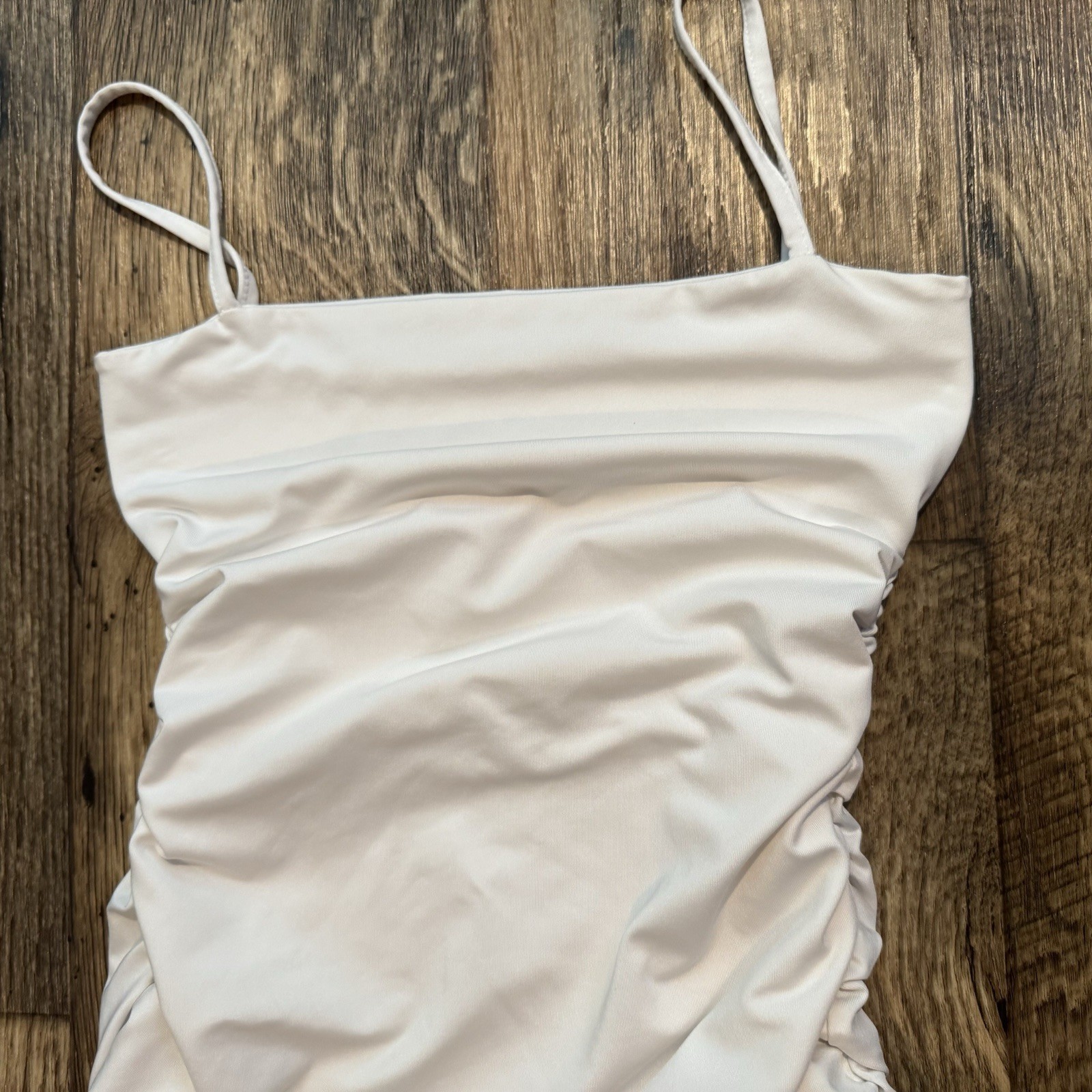 This chic SHEIN ruched mini dress is perfect for nights out, parties, or layering. Featuring spaghetti straps, bodycon fit, and side ruching, it offers a flattering silhouette with a touch of elegance. • Brand: SHEIN • Style: Bodycon Mini Dress • Color: Beige / Nude • Size: XS (US 2, EU 34) • Material: 95% Polyester, 5% Spandex • Features: Ruched sides, stretch fabric, pullover style, spaghetti straps • Occasion: Clubwear, Party, Cocktail, Date Night, Summer • Condition: Pre-owned, gently used, in good condition Care Instructions: Machine wash cold on gentle cycle with like colors, tumble dry low. Smoke & Pet Free Home