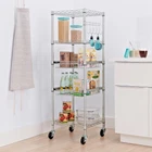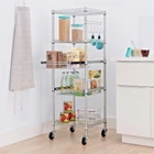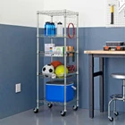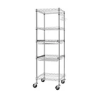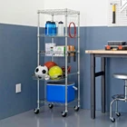 TRINITY EcoStorage 5-Tier NSF Certified Square Rack with Wheels Features: 285 lb Total Weight Capacity on Wheels Anti-Tip Hardware Included Adjustable Shelves 2 Sliding Pull-Out Wire Baskets TRINITY EcoStorage® square rack is versatile and can be used to organize your garage, kitchen, pantry, or bedroom. The mobile and compact design allows the unit to fit in narrow spaces, and helps to maximize your storage in small areas. The sliding baskets provide easily access and visibility to your stored items. With a 285 lb total weight capacity, it's strong enough to hold your household supplies, kitchen items, and everything in between! With (4) locking wheels, your unit can be moved for easy cleaning, or locked in place when in use. Assembly requires no tools and uses a slip-sleeve locking system, which adjusts shelves in 1-inch increments. Overall Height (on Wheels): 56.5" Overall Width: 18" Overall Depth: 18" Weight Capacity per Shelf: 75 lb Weight Capacity per Basket: 25 lb Total Weight Capacity (evenly distributed): 285 lb TRINITY’s EcoStorage® chrome finish is made with our proprietary zinc and copper plating process. Our sustainable product approach ensures we do not leak toxic chromium into our precious earth. Fits in Tight Spaces The compact design makes it perfect for small areas to help maximize your storage space! This allows you to utilize small areas in your home or garage that otherwise would go to waste! EcoStorage® Chrome Finish The chrome color finish is achieved without releasing toxic chromium into the environment, all while increasing the performance of the finish, without sacrificing color characteristics. Easy Pull-Out Storage The sliding pull-out baskets make those items that get lost in the back depths of your cabinet easily accessible. Each basket is equipped with ball-bearing slides to provide a smooth open and close. Gain visibility to your stored items, and the convenience of putting everything within arms reach! Prevent Items From Falling The shelves are designed with a wrap-around raised lip to help prevent items from falling off the sides or back of the shelf. When pulling out your sliding basket or rolling away your rack, you won't have to worry about items falling in those hard-to-reach spaces. Adjustable Shelves for Personal Configuration Uses a slip-sleeve locking system that allows you to adjust the shelves of your unit in 1" increments for your personal configuration. Shelf and Basket Adjustability: 1" Increments Hang Small Items and Accessories We have i ncluded a sidebar with (5) hanging hooks to store additional items or hang accessories.