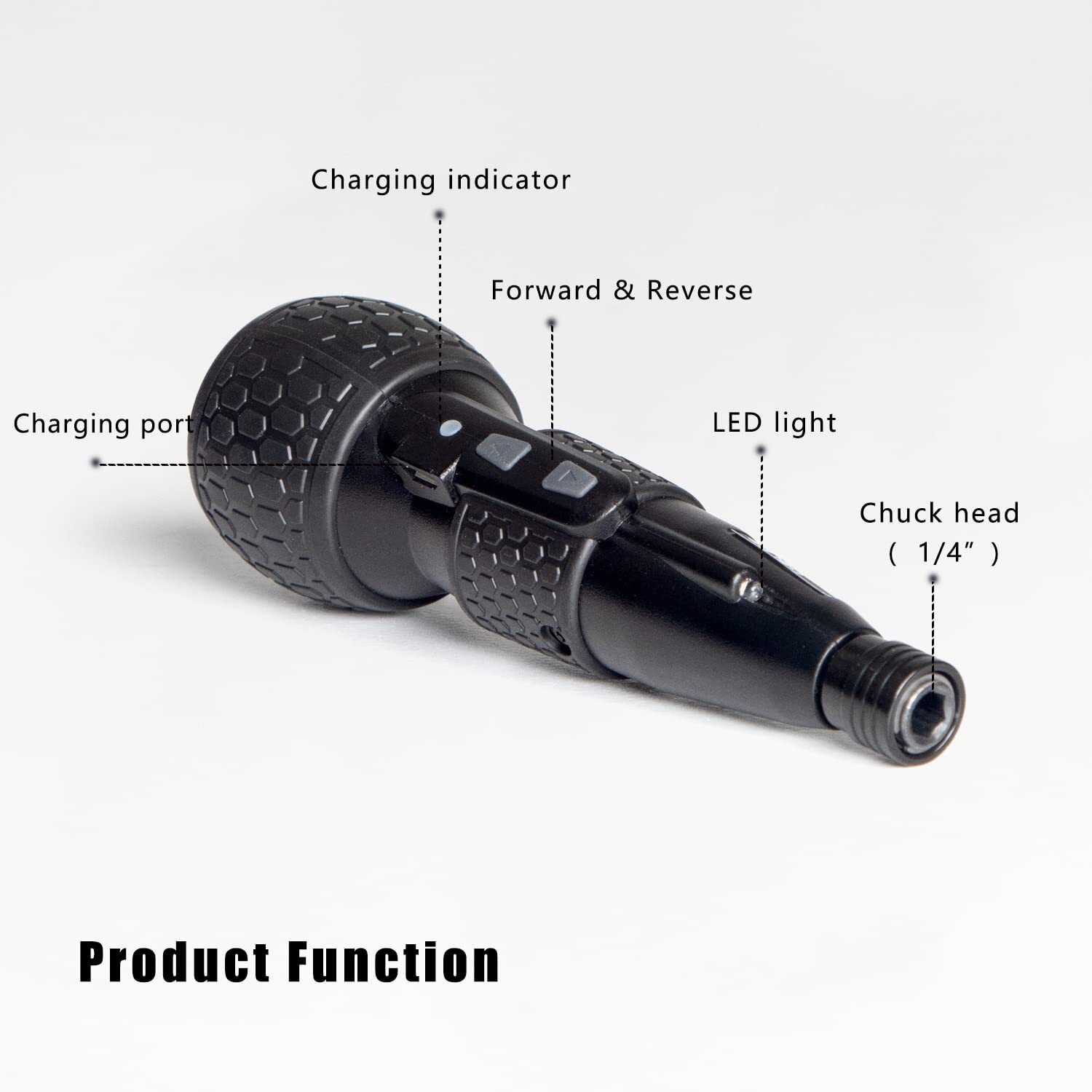 Integrated manual and automatic mode, the maximum electric torque is 3N.m, and the maximum manual output torque can reach 10N.m Long tip material: good material-S2-steel, high hardness, good toughness, imitating the appearance of traditional screwdriver, good feel, light weight, low noise, easy to operate Power your cordless screwdriver anytime, anywhere with micro USB charging LED light easy to see the work space even in dimly lit places This small electric screwdriver will help you start any home improvement DIY project and is also friendly to women, easy to take