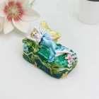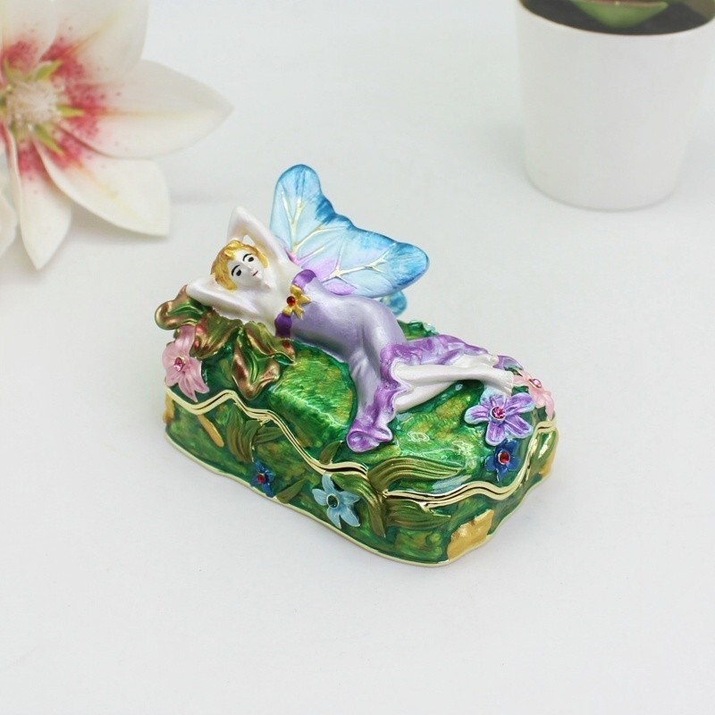 【 Materials】Pewter Enamel Size:9x6.3x4.8cm(LWH) Made in GuangDong 【 Package】Gift Box 100% Brand New Handmade Pewter Enamel Trinket Box Handmade by masters with 20+ Years Experience Can be use for Birthday Gifts,Wedding Favor,Christmas Gifts,Home Decorative This collectible trinket box is meticulously crafted from fine pewter I t is hand enameled and then lavishly inlaid with crystals by skilled artisans. Opens on a hinge to reveal the hand painted interior Magnetic closure to keep the box shut securely , T his jewelry trinket box is made of a pewter-like alloy and finished with a high polished finish Versatile Use: Perfect as both a decorative piece and a functional trinket box I deal for storing small precious items while bringing fortune symbolism