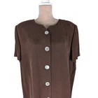 SHOMI by Miller Shor 16 100% Silk Drop Waist Brown Midi Dress Mother of Pearl Very good condition- minimal signs of wear 23"- Pit to Pit 42"- Shoulder to Hem Mother of Pearl Buttons Shoulder pads Please let me know if you have any questions or need additional photos. Please Note - all items are described to the best of my ability and knowledge. Enlarge pictures and look carefully to identify any flaws or wear. If you are dissatisfied with the item you receive, please contact me immediately and I will do my absolute best to resolve the situation. Items are stored & shipped from a smoke & pet free environment. However, items come from a variety of sources and may have been exposed to smoke or pets. If you are sensitive to these things please keep this in mind. Thank you and happy shopping!