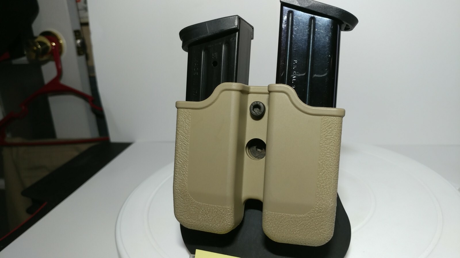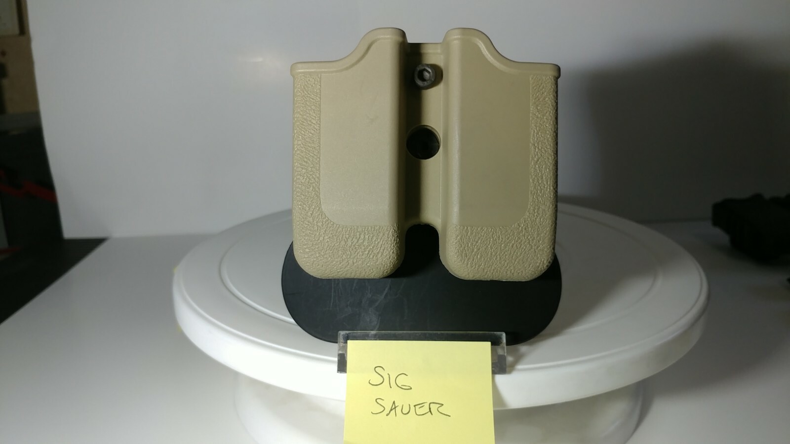 Hello everyone, Someone gave it to me, but I've never used it. Stamped Sig Sauer on the back as you can see from the pictures. Double magazine pouch not broken or dented from what I know it is reinforced polymer and supposed to be for 9mm. In the pictures I put a couple of 9mm magazines in there so you can see what it looks like. It is adjustable with an Allen Key. I Think you guys probably know more by looking at the pictures. Think that $22 is a fair price with flat shipping of $5 and will be sent within 3 business days of purchase to your verified paypal address. Sorry no internation bidders or buyers. Bad experience in the past. Let me know if you have any questions or need more pictures. No problem with refunds. I will refund your full purchase price if you are not satisfied within 30 days, minus the shipping charge. You will have to pay the cost to send it back to me. If you do not agree, please do not purchase. Better to be upfront and part in good terms than be disgruntled over any misunderstanding. Thank you and have a nice day. Please note: Magazines in the pictures are NOT included. They are strictly just for demonstration.