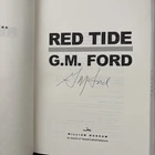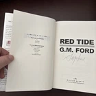 The product is a signed first edition, first printing hardcover book titled "Red Tide" by G. M. Ford. It features a Mylar dust jacket and has a total of 313 pages. Published by HarperCollins in 2004, this novel falls under the genres of thrillers, suspense, terrorism, and mystery. The book is intended for trade audiences and is a part of American literature. With a cultural region focus on American literature, this collectible item is a must-have for fans of the author or those interested in first edition books.