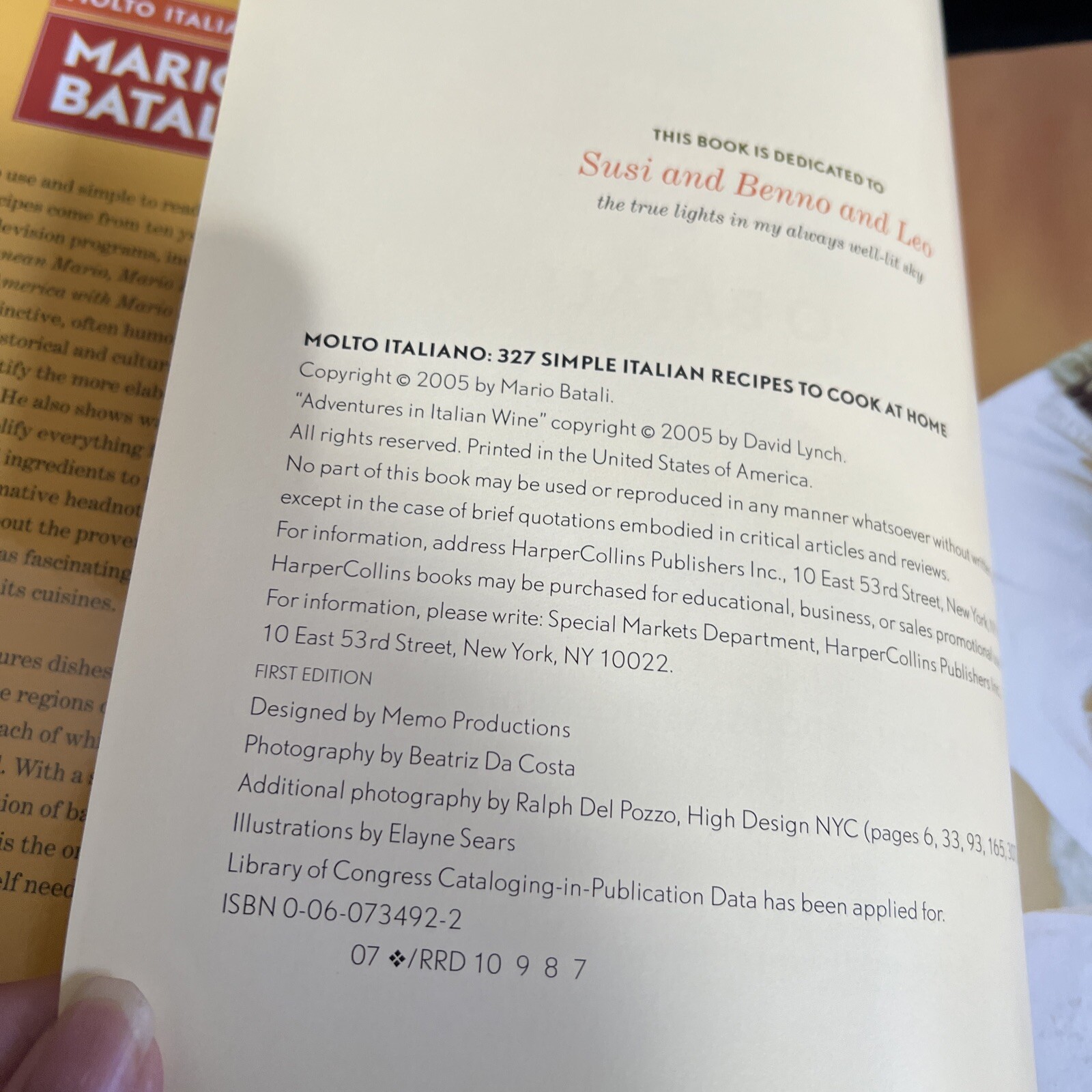 Experience the authentic taste of Italian cuisine with Molto Italiano: 327 Simple Italian Recipes to Cook at Home, a James Beard Award-winning cookbook authored by Mario Batali. This hardcover book features 528 pages of mouth-watering recipes, illustrated with beautiful images and signed by the author himself. Indulge in the regional cuisine of Italian food with this vintage book, published in 2005 by HarperCollins. The book measures 9.5 inches in length, 7.8 inches in width, and 1.4 inches in height, with a weight of 50.4 ounces. It is a later printing (7th of 1st edition) and comes with a dust jacket. The book is written in English and caters to the general, regional, and ethnic Italian topic. Get your hands on this amazing cookbook and enjoy the delicious taste of Italian food at the comfort of your home. The book is shipped via USPS Media Mail in a box 📦