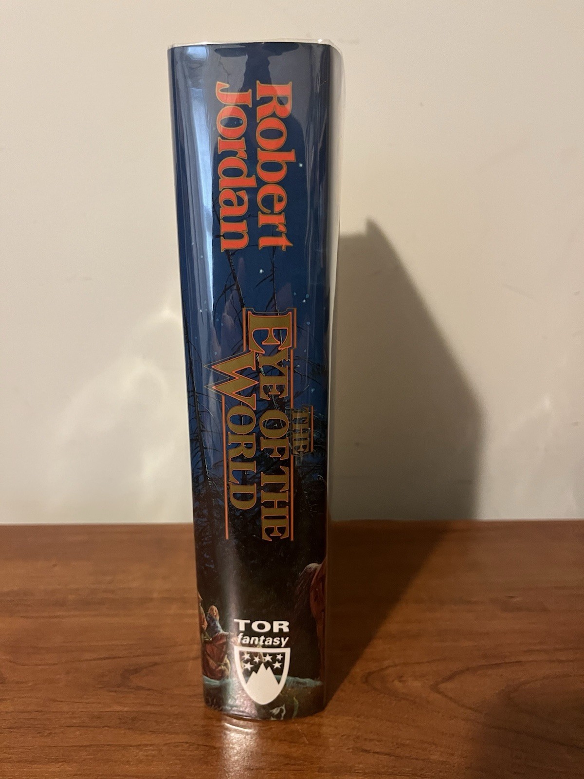 This is the first edition, seventh printing of The Eye of the World, signed on the title page by Robert Jordan. This copy is in very good to near excellent condition. The first two pages and last page have some creasing on it, as seen in the last three pictures. Otherwise, the dust jacket is in excellent condition and the book has strong binding and clean pages. This is a very nice copy.