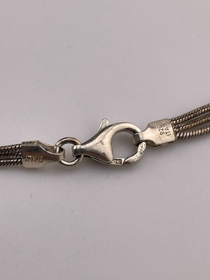 SILPADA ITALY N0914 925 STERLING SILVER 3 STRAND THOREAN NECKLACE 16" 3712 MINIMALIST ****************************** Thank you for your interest in our jewelry. We?d like to introduce ourselves. We are just a retired couple who love matching our customers with great jewelry. We?re not professional jewelers. To have the best shopping experience we like to recommend the following: Please measure your hand, wrist, finger or neck to ensure the best fit. We can use your measurements to help with sizing. Please ask all the questions you want. We know some stuff and, if we don?t, we?ll do the research. We like to learn too. More Stuff: If an item is described as ?gold over 925 sterling silver? this means it is gold vermeil. Vermeil is the process by which a layer of gold (usually 14k or 18k) is bonded to sterling silver. We only clean with gentle soap and warm water to avoid damage. The items we sell may be new or pre-owned and may have normal wear, slight damage, and/or tarnish. We make every effort to ensure the items we sell are as described. This includes testing to confirm metal purity if the item isn?t marked, and testing for gemstone identity. We try to put measurements in the jewelry description and include a photo of each piece with a U.S. quarter (25mm).
