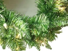 Nostalgic Green and Silver Tinsel Wreath 24" Green and Silver Tinsel wreath -- the tinsel sparkles brilliantly . The wreath, with 120 tips is completely pre-strung with 50 clear mini lights - with UL cord approved for indoor or outdoor use. Add colorful decorations or leave as is -- a beautiful sparkling wreath! First photo is manufacturers stock photo, Second photo gives you a better idea of the shade of green tinsel.