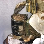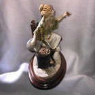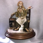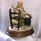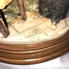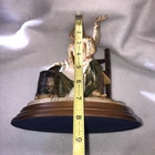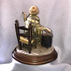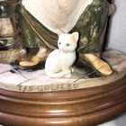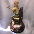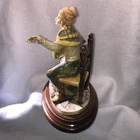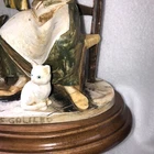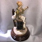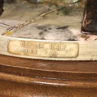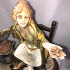 This is a stunning, detailed, vintage piece from Fontanini that features a woman roasting and selling chestnuts with a white cat at her feet. It is done in an old world style. Each Fontanini piece is hand painted and has a patina added. The sculpture has been permanently attached to a beautiful wooden base. This makes for an attractive display piece. It is marked with the vintage Fontanini Spider mark (making this pre-1980's) along with "DEPOSE ITALY 938". Elio Simonetti's signature can also be seen on the base behind the chestnut roaster (see close up photos of these areas). The front appears to read "GALILEO" but I can't make out the first part. This piece, on the wood base, measures approximately 8 1/4 inches tall, 7 7/8 inches long and is about 5 1/8 inches wide. It is made from a polymer resin type material. Sculpture is in good vintage pre-owned condition. There are no nicks, chips, cracks or repairs. Wood base shows light wear. Please review and enlarge all photos for additional details, views, angles and measurements. Shipped via USPS Ground Advantage.