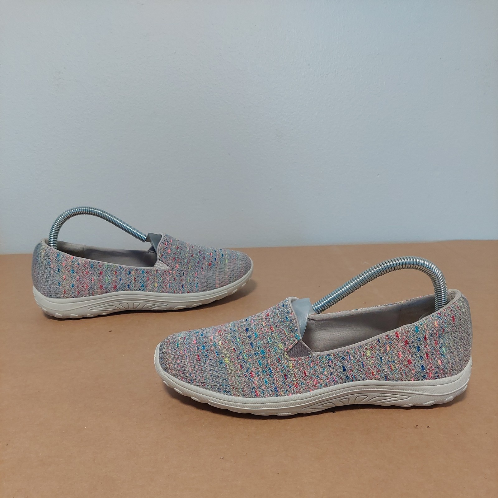 The SKECHERS Vegan Relaxed Fit Air Cooled Comfort Mary Janes Loafers in size 8 are a stylish and comfortable option for women. Made with vegan materials, these Mary Jane loafers feature a relaxed fit and air cooled comfort, making them perfect for everyday wear. The multicolor design adds a fun pop to any outfit, while the Skechers brand ensures quality and durability. Ideal for those looking for a flat and comfortable shoe option that is also eco-friendly.