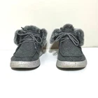 SKECHERS Women's Bobs Skipper Cotton Tails Gray Ankle Boots Size 8 Lace up Faux fur Polyester upper Preowned in excellent condition See photos Shipped within one business day