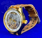 Exclusive "Marriage" watch - a masterpiece of watchmaking art where vintage movement gets new life in a modern case. Each piece is hand-assembled with attention to detail. These aren't just watches, but history reborn through skillful fusion of different eras. WE CAN CREATE UNIQUE CUSTOM WATCHES FROM SCRATCH ACCORDING TO YOUR DESIGN IN A SINGLE PIECE. Message us! Want to participate in creating your unique skeleton watch design? Share your ideas and after careful work, we'll present you with your unique design. Dial adorned with an elephant relief symbolizing prosperity, longevity, and grace in overcoming life's challenges. Dial with cold jeweled white enamel and bas-relief engraving. Noble silver-plating with blackening. Hands made using a punched stamp. Skeleton watch movement with hand engraving and gold plating. One-of-a-kind piece. Elegance in every detail. CASE : Stainless steel with PVD coating (titanium nitride); STRAP : Included, leopard band, 22mm, genuine leather; SIZE : Diameter: 48mm; Thickness: 16mm; CRYSTAL : Mineral glass front and back; SHIPPING : Within 2 business days after payment; PAYMENT : According to eBay rules; RETURN POLICY: If you are not completely satisfied with your purchase, return the item within 30 days of receiving your watch for an exchange or refund. Buyers with zero rating require prior approval. At the heart of all our watches are vintage movements manufactured since the 1890s, averaging around 100 years old. All movements installed in watches have been restored by our experienced craftsmen. Complete servicing and careful restoration give them new life. Antimagnetic steel case protects this masterpiece. The designer dial is adorned with cold jeweled enamel, each hand perfectly fitted by a master. SPECIFCATIONS: Mineral crystals (sapphire installation possible); Handcrafted genuine leather strap; Custom dial design available; All dials are on feet. ADDITIONAL SERVICES: 1) Replacement of mineral crystal with sapphire one: Starting from $60 for front crystal (from 38mm); Starting from $40 for back crystal (from 37mm). Crystal diameter varies for each watch, please inquire via private message for exact cost. 2) Custom engraving available on case back. Clarify the price in the message. 3) You'll receive the watch in an exclusive branded wooden box - perfect for a WOW effect gift (without extra charges)! About us: Extensive experience in creating skeleton watches since 2011. Each design is crafted by masters of their craft, investing experience, knowledge, and soul. IMPORTANT CARE RECOMMENDATIONS: Not water-resistant, keep away from moisture; Avoid bumping or dropping the watch; Wind carefully without excessive force; Set time clockwise only; Keep away from magnets; Service every 2-3 years; Acceptable daily rate variation ±3 minutes.
