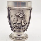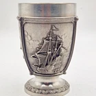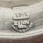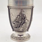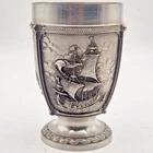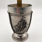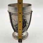 This vintage SKS Zinn La Paloma whiskey cup is a unique addition to any collection. Made in Germany, this pewter cup measures 4.5 inches in height and 3 inches in width. It is handcrafted and features intricate details. The cup is perfect for whiskey enthusiasts and collectors alike. The SKS Zinn brand is known for its quality metalware and this cup is no exception. It is a great gift for anyone who appreciates vintage items or is looking for a unique piece to add to their collection. Whether you use it for its intended purpose or display it as a decorative item, this cup is sure to be a conversation starter.